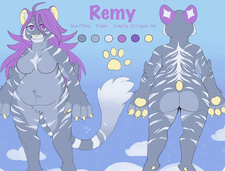 Simple sheet includes front, partial back view, and palette. A fixed price for relatively simple characters ONLY. No add ons.Detailed Sheet: $80 and up